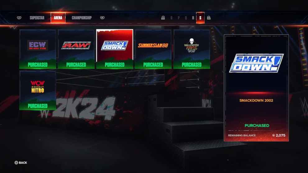 If you’re playing the Standard Edition of WWE 2K24, you’ll have to grind through the game to earn Store Tokens to purchase unlockable Arenas and Championships. But for those who pre-ordered either the Deluxe or 40 Years of WrestleMania Edition, the SuperCharger perk comes with them.
