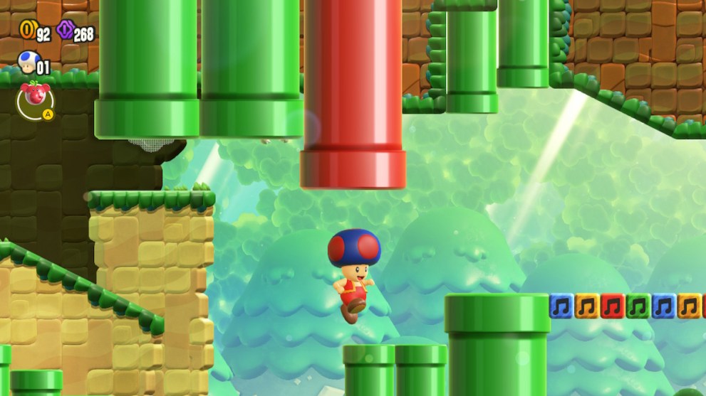 The first Captain Toad location in Super Mario Bros. Wonder is right at the start of the game in the first world. You’ll need to have unlocked the plains area to the north first, which just requires the first handful of levels to get to. There’s a hidden pipe in the upper right corner of the screen that leads to Captain Toad’s first location. You’ll know you’ve found it when the A button shows up above Mario’s head.