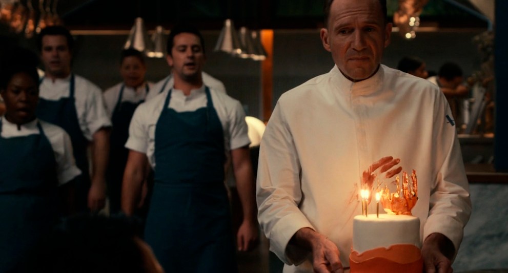 As the male guests return and sit back at their tables, the Chef unmasks Tyler who knew from the start that the guests would die by the end of the dinner and still paid for Margot to come. This doesn’t please the Chef one bit as he sympathizes with Margot as she works in the service industry, leading us to the next dish that wasn’t on the menu. But food is food, right?