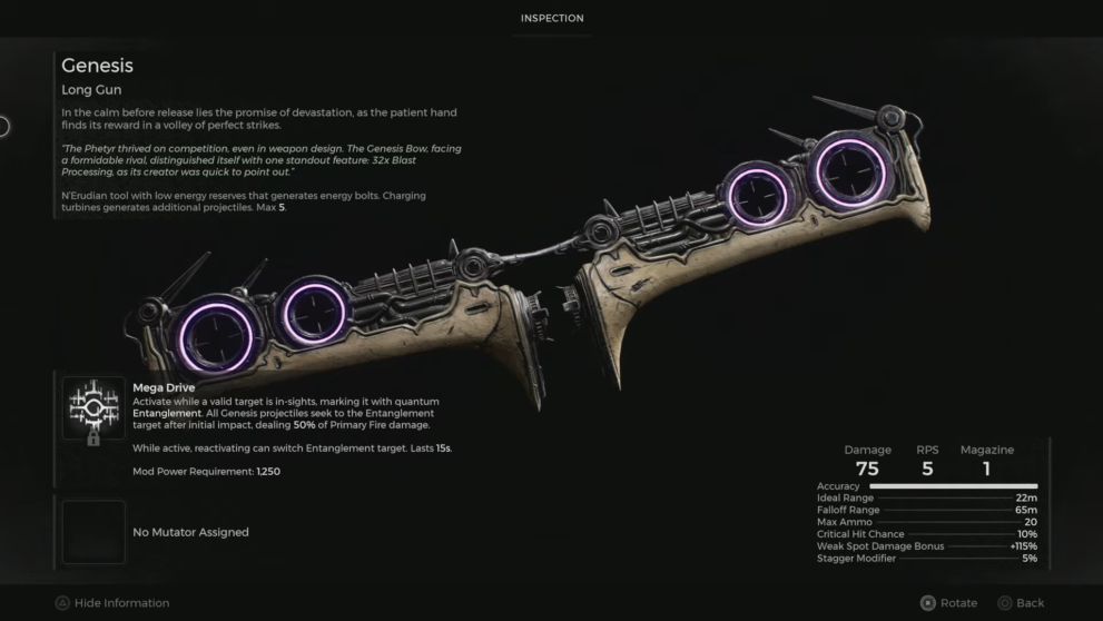 Remnant 2 DLC weapon gensis bow and arrow inspect screen
