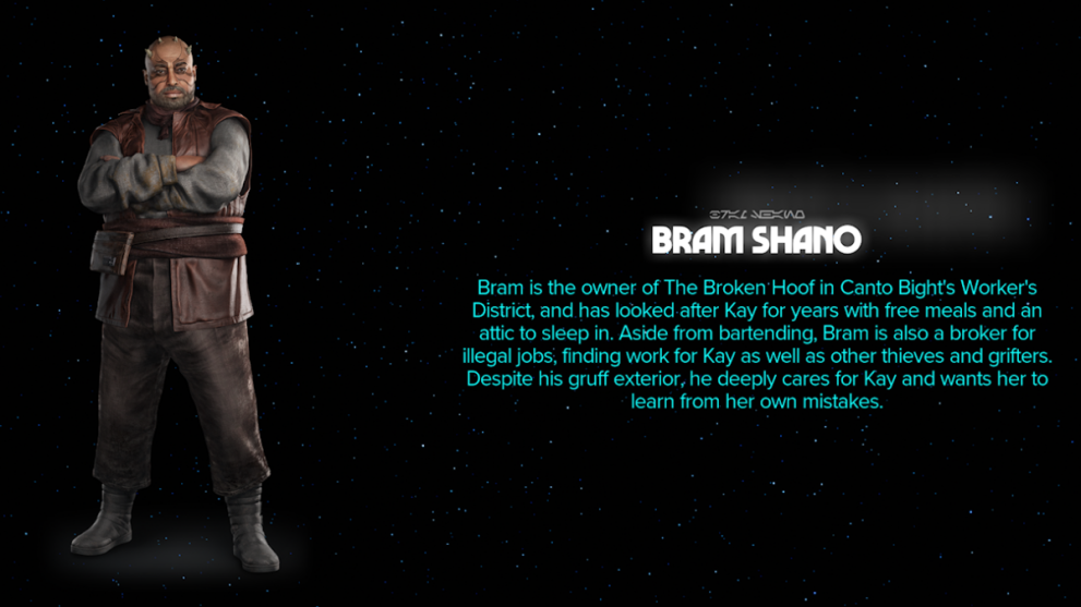- Location: Sent to meet at the Cantina in Toshara. Sends Kay on a mission to gather data from the Imperials.