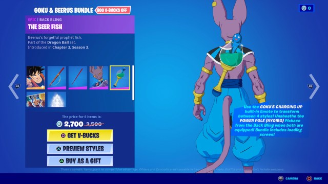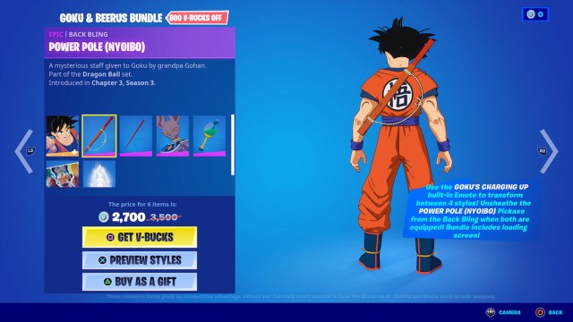 Buying all the Item Shop Dragon Ball cosmetics will currently run you 6,800 V-Bucks if you purchase the bundles. Individually, you’d be dropping 9,100 V-Bucks.
