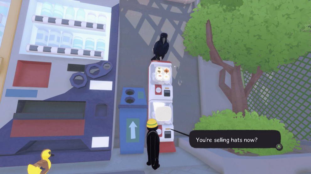 The hats in gumball machines can be purchased using Shinies. A crow is perched atop a machine selling one hat for between 5 and 10 Shinies each.