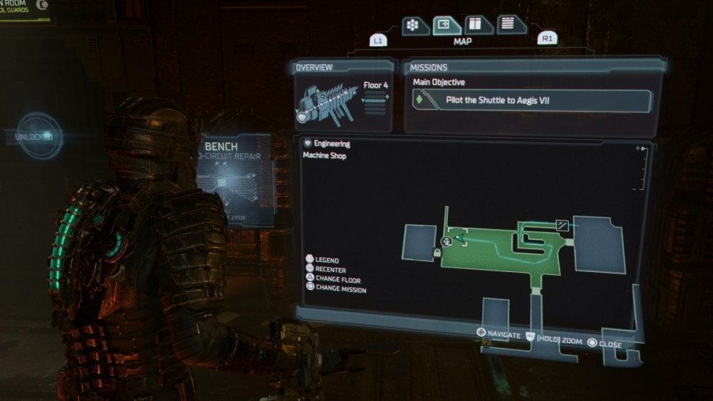 The first is located in the Bridge section of the Ishimura. To reach it, head to the Main Atrium area and then head into the elevator located on the left side of the central column. Take the elevator up to the fifth level, and then head out into the hallway. To your right should be the Maximum Security door, which will lead into the Water Purification Storage room.