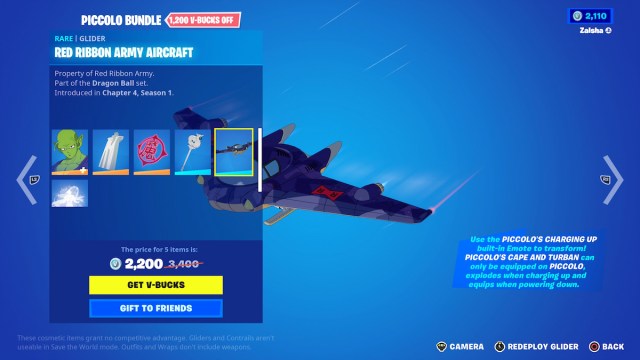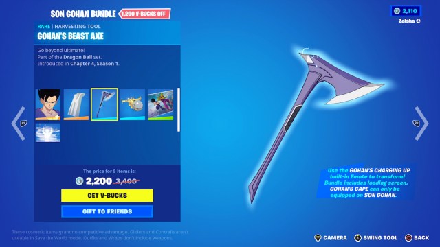 If you want to buy all of the items, the Son Gohan and Piccolo bundles will cost you 4,400 V-Bucks in total. Buying everything separately would be 6,800 V-Bucks.