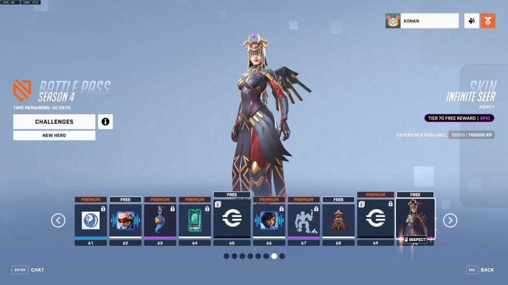 Infinite Seer is a new Epic Mercy skin that takes everyone’s favorite hard-working medic, Dr. Ziegler. It gives her a darker, mysterious appearance in a perfect collaboration with the Starwatch/Space Opera-themed Battle Pass. Infinite Seer is available for all players during Season 4 and can be unlocked simply by reaching Tier 70 of the Battle Pass, where it will automatically be added to your Hero Gallery to equip as you wish.