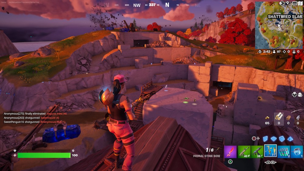 If you’re drawn to looting houses but don’t want to be right next door to an opponent doing the same, Frenzy Fields will likely be your most frequent drop point. There is plenty of open space between structures to try out all of the new loot you have acquires in the area.