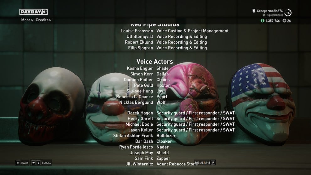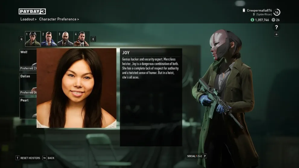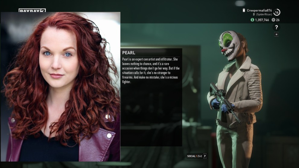 Although Pearl is new to the Payday squad, Rebecca LaChance is by no means new to the video game industry. She’s done voices for Cyberpunk 2077: Phantom Liberty, The Bradwell Conspiracy, Ghost Recon: Breakpoint and plenty more. Needless to say, she fits in perfectly with the rest of the team.