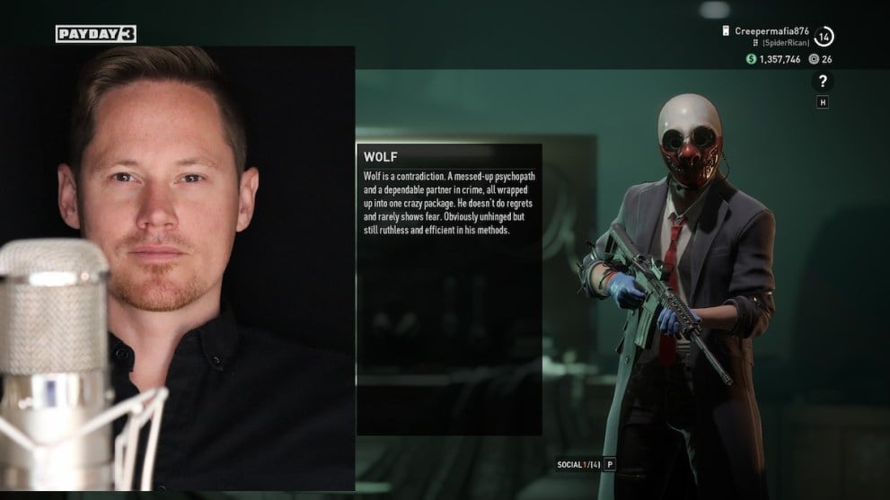 There are six main members of the Payday squad this time around, with the addition of Pearl to the team. However, while the character of Wolf is still the same in the game, behind the scenes there’s been a bit of a switch-up.