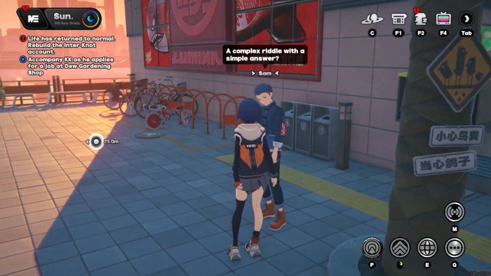 Sam will ask you to compete against him to solve the riddle and see who wins. After you exhaust all the dialogues, your schedule will get updated.