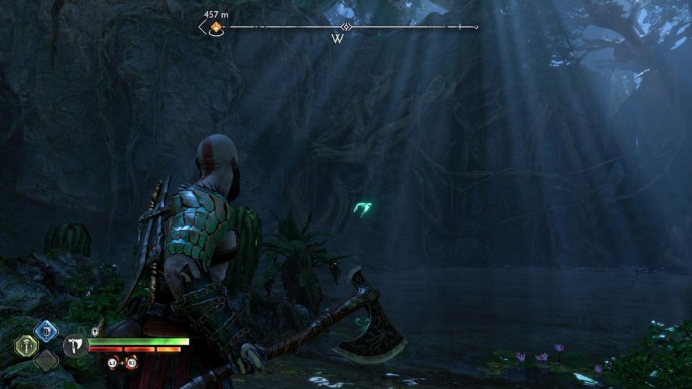 Upon reaching Vanaheim for the first time, you will be headed north in search of your objective. However, along the way, you are going to find this first Raven just flapping its wings near the river. Do what you come here to do, and move on.