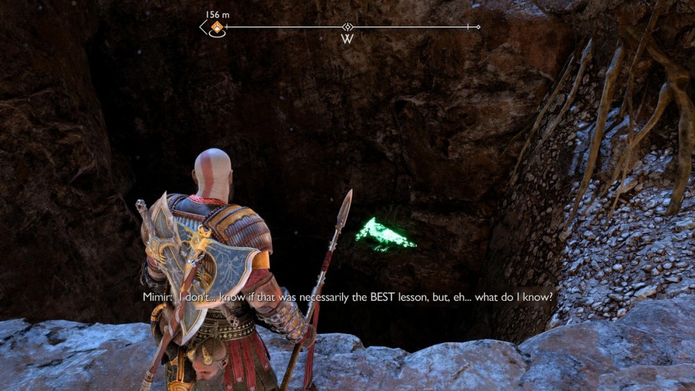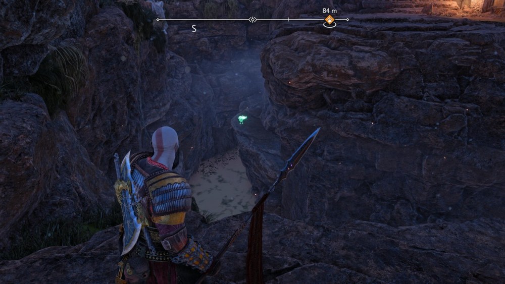 Now you are nearing the endgame of God of War Ragnarok, which is where the previously inaccessible area of The Crater and The Plains become a place you can visit. The Plains is a huge area, with a total of five Ravens to find. The first is just to the left of the chasm, on top of a cliff.