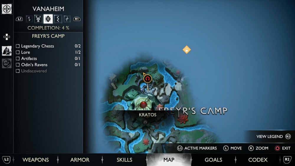 A central location in the whole of Vanaheim, you are going to visit Freyr’s Camp several times. When you first arrive, be sure to look up and spot this Raven hanging out on a branch near the big circular structure. Aim true, and fire away.