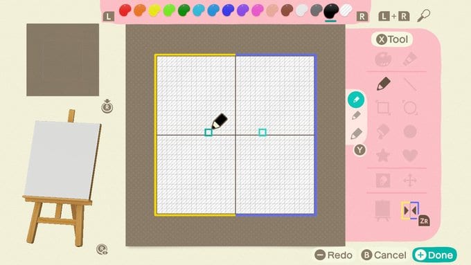 I would start off by removing the red marks by putting white paint over it and then pressing ZR, which makes the design mirror over to the other side so that you don’t have to do the same design twice.