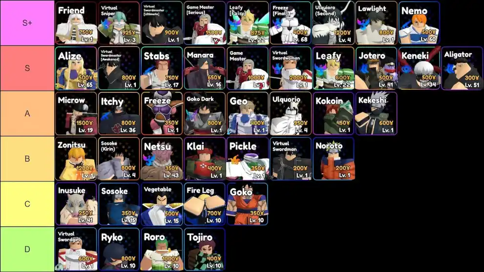 D Tier Anime Royale Units