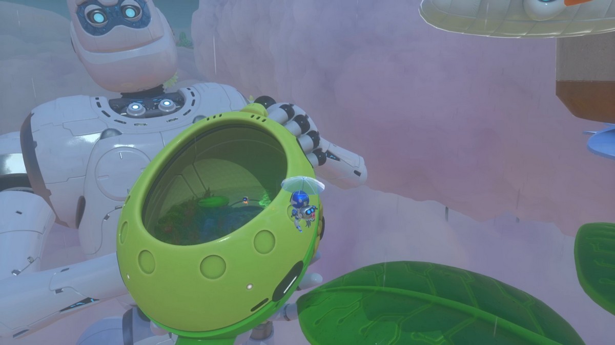 As you make your way forward, you will be able to reach the watering can used by the giant robot via some leaves. Float across to get to this bot.