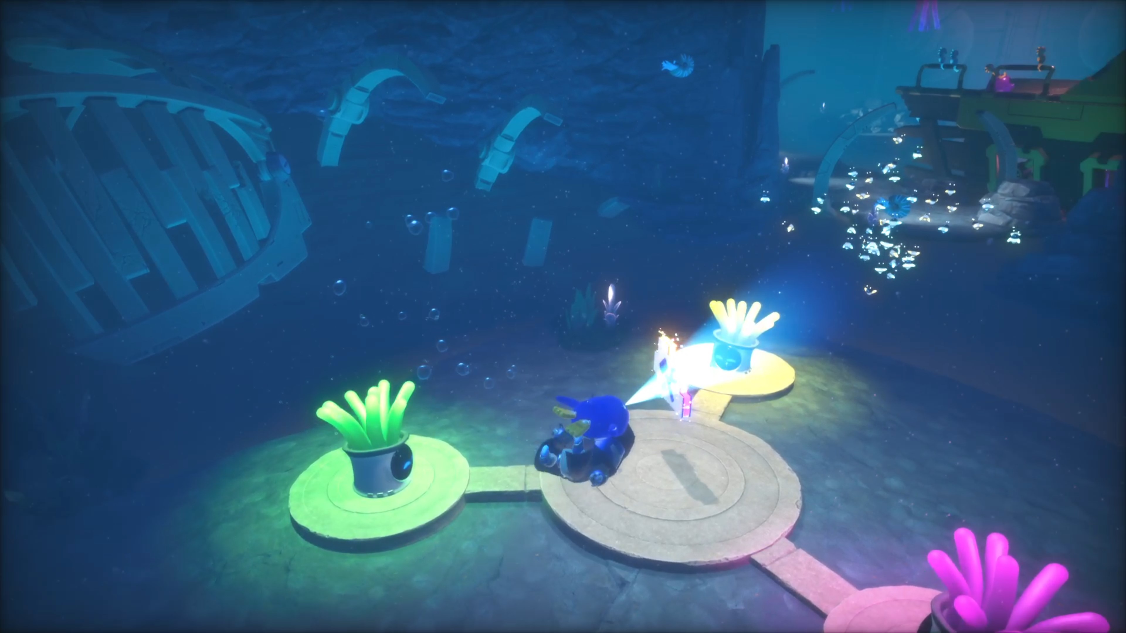 Astro will need to take a dive and use his penguin friend to navigate deep waters and danger in this level.