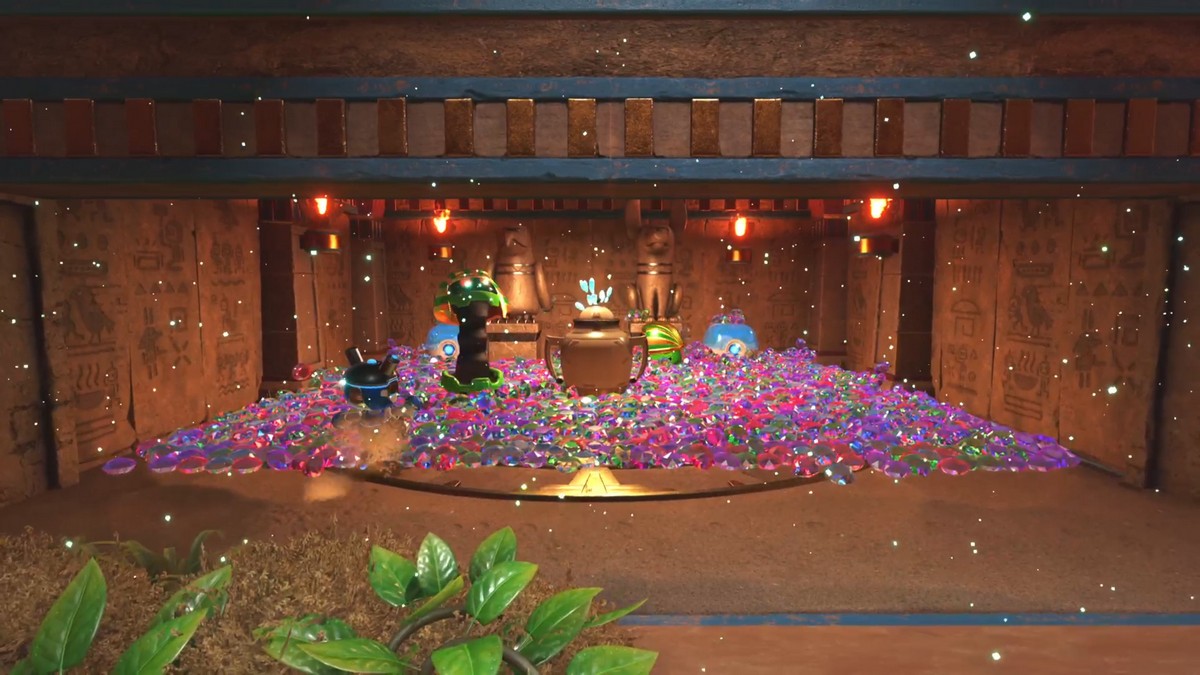 At the end of the level, do not get on the platform. Instead, look to the side to find another pillar overflowing with treasure. Use the metal bounce pad to get up top, and move past the door puzzle to find the portal.