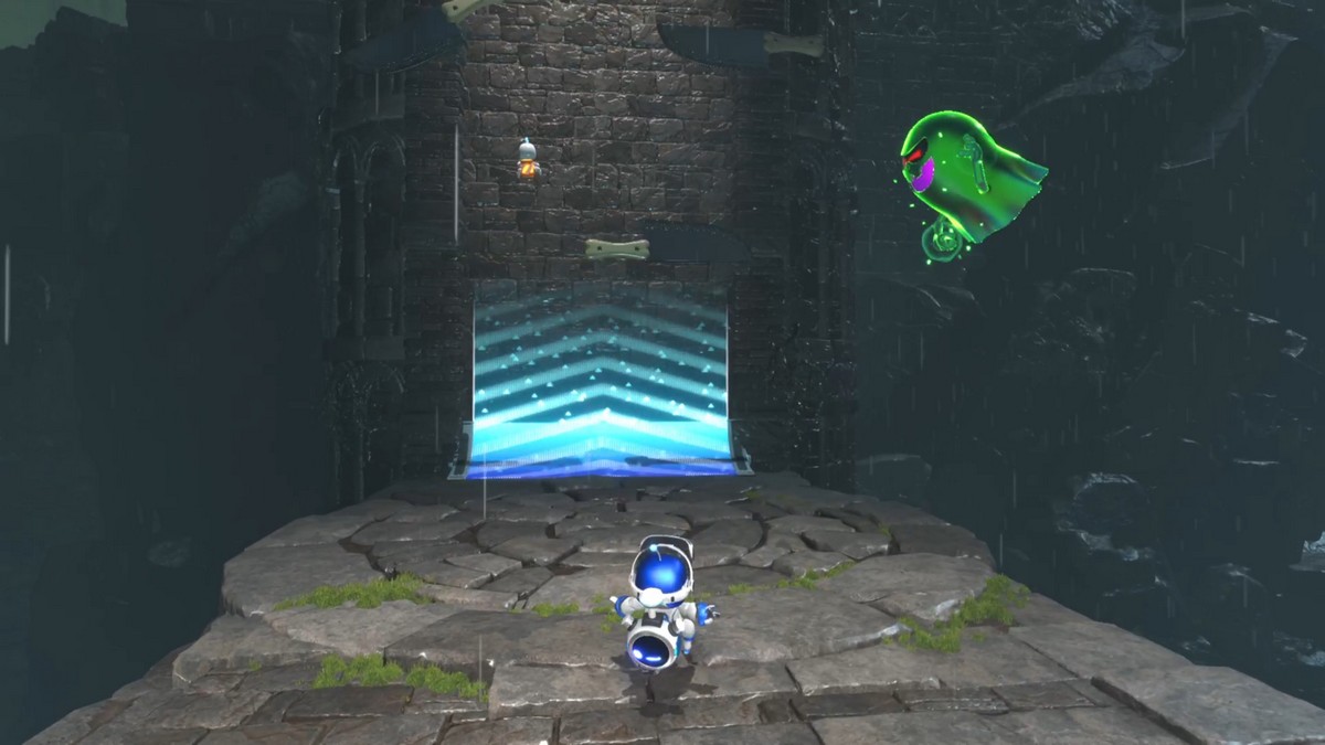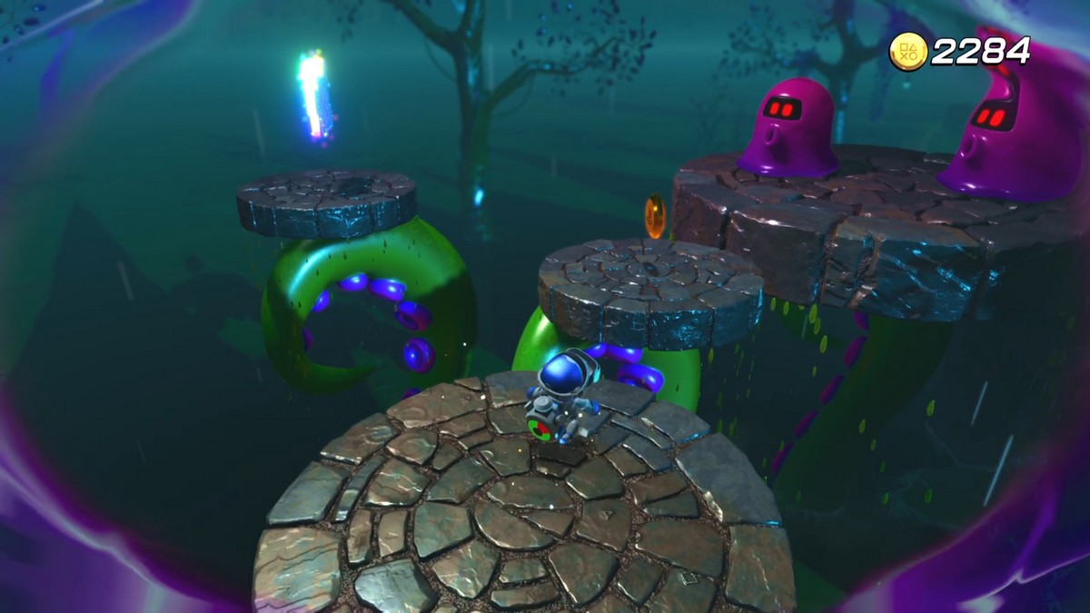 Spot the giant serpent resting in the wall. Get near and it will swallow Astro, allowing you to gain access to this bot at the end of the path.