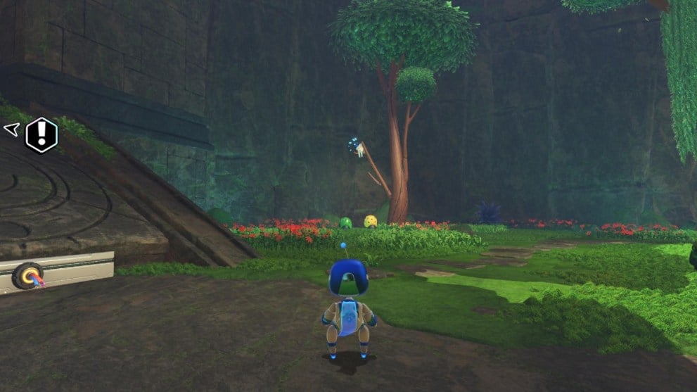 Back down from the tower where you got the first egg, take a sharp left from the entrance. There’s a bot stuck in a tree being cornered by spiky monsters. Destroy them and punch the tree trunk to free the bot, ready for collection.