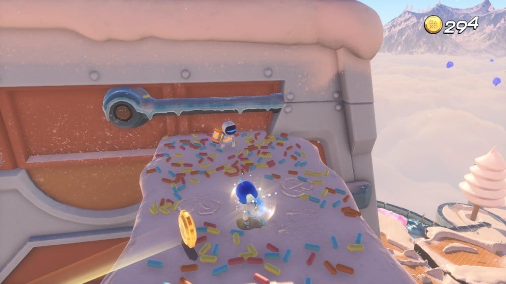 The first bot is themed around Solid Snake, and is hanging from an ice cream tree at the start of the level. Simply jump over to the tree and hit the trunk to send him to the ground, where you can claim him easily.