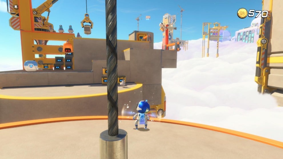 Once you’re in the construction site, find the ladder towards the center and follow the gradually ascending yellow platforms. There’s a bot stood here!