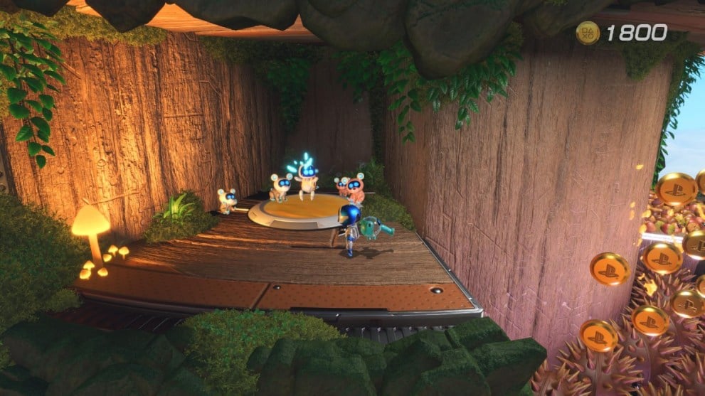 Head to the alcove on the left-hand side of the first cave, to an area with a mushroom hanging down from the ceiling. There’s a bot stuck on a pedestal, so punch the mushroom to knock it off and collect.