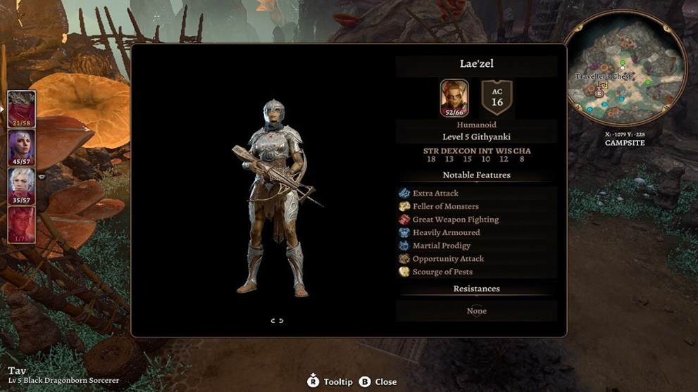 The biggest benefit to Lae’zel is that she can somewhat do what Karlach does, and you can easily get her right from the start of the game. While this sounds like she is a poor substitute, she has her own benefits after reaching a certain level. All Fighters at level two gain the ability Action Surge which lets them make an additional action. If you equip Lae’zel with the strongest heavy weapons you’ve found, this second attack makes her almost unstoppable against stronger opponents.