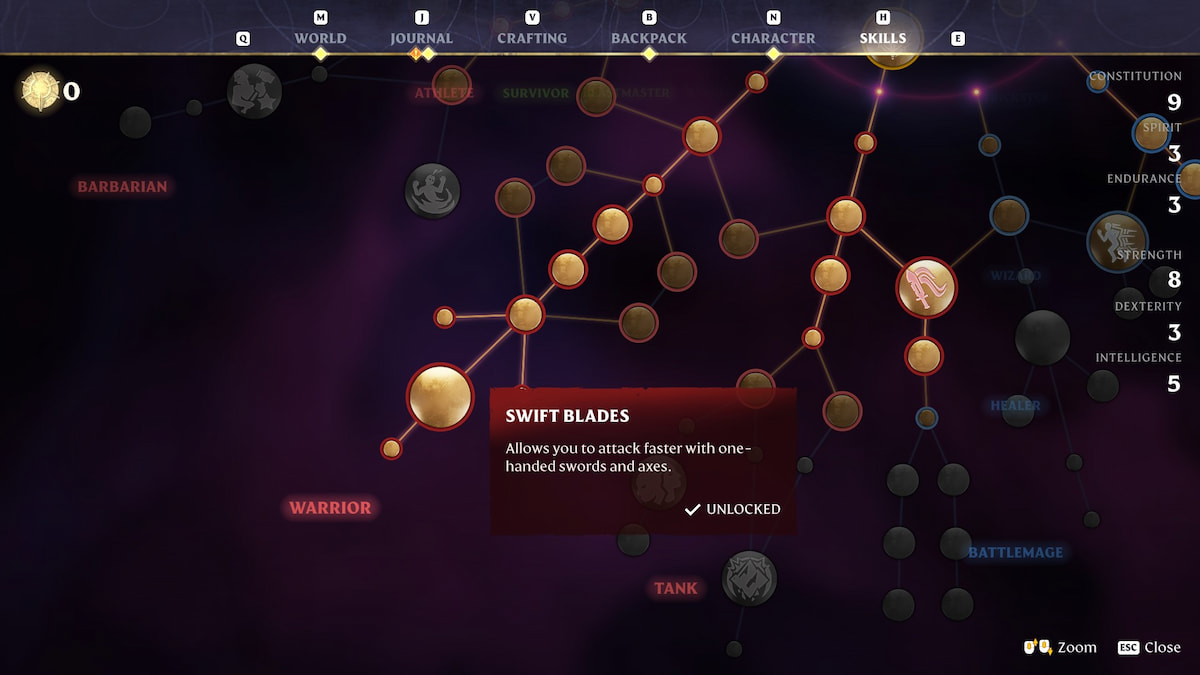 Lastly, for the smaller nodes, I recommend you take Constitution and Endurance primarily. Also, take Dexterity/Intelligence/Strength, depending on your weapon of choice. You can respec at any time, so don’t worry if you pick the wrong skill node.