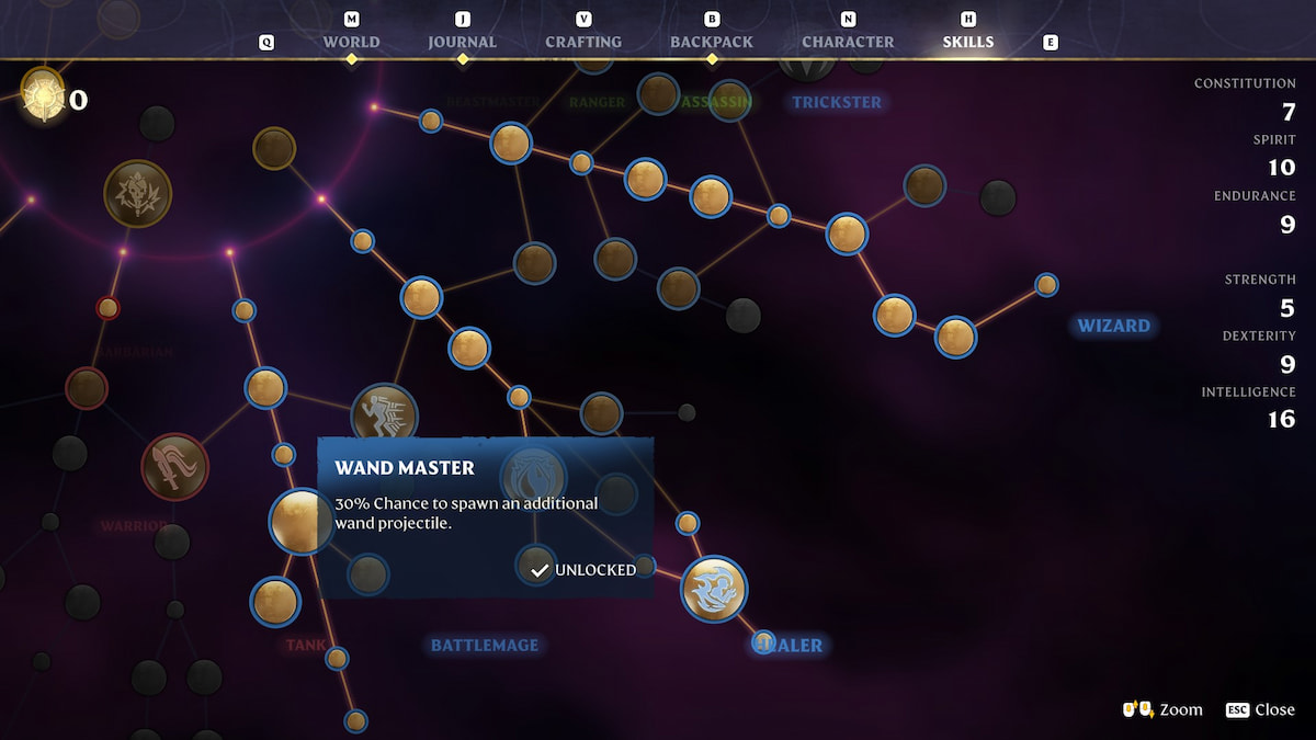 - Attribute nodes – If you are using only a wand, don’t waste your skill points on Spirit. Invest them into Intelligence instead.