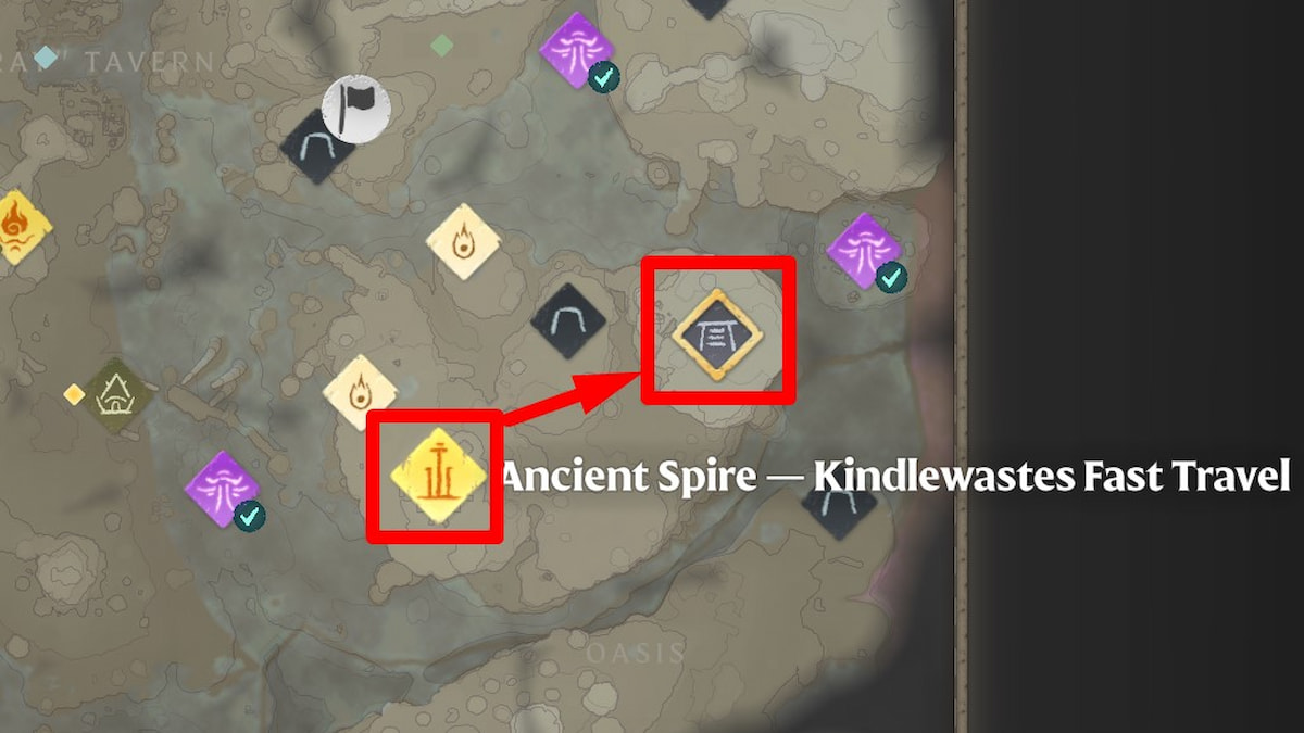 As shown on the map image above, the best location to farm Lapislazuli in Enshrouded is the Sun Temple northeast of the Kindlewastes Ancient Spire. You can reach it in mere seconds using literally any glider in the game, saving you a flame altar slot you would’ve otherwise needed.