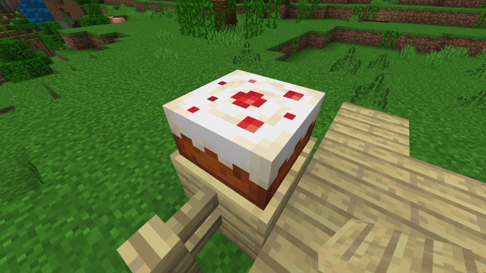 If you’re going to bake a Minecraft cake, the in-game cake is a pretty easy and obvious choice. Why not? It looks absolutely delicious! While the pixels leave room for imagination, its likely topped with white fondant and strawberries. As for the inside, there are two layers with what looks to be chocolate icing in between. That’s as good a combination as any!