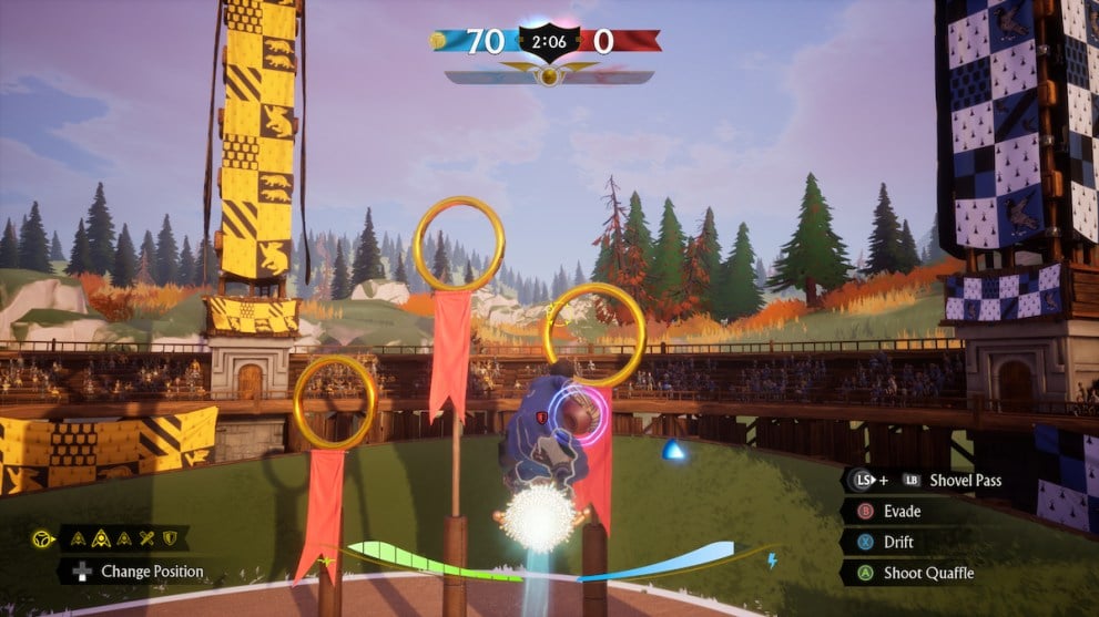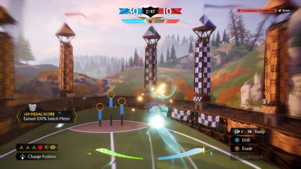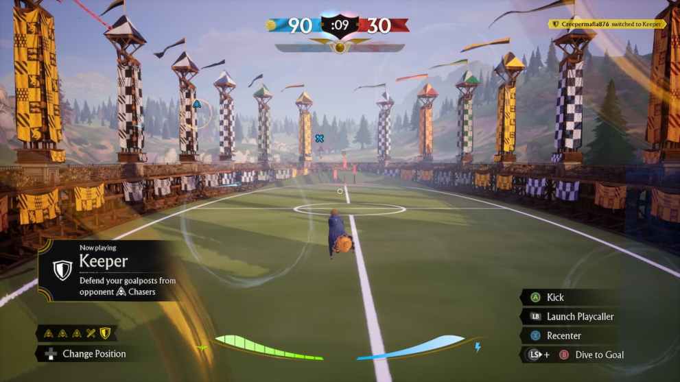 The Seeker is only available when the snitch appears, and you’ll be notified when it’s on the pitch. You can then swap to the Seeker, where you’ll fly through the Snitch rings to gain speed and catch the Snitch before the opposing Seeker. It can be challenging, especially if you’re playing aggressively and want to bump the other Seeker to give yourself the edge.