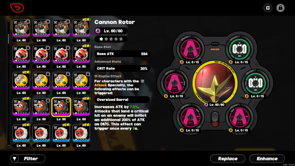 - Starlight Engine (A) — This W-Engine boosts your Base Attack and Attack. Its W-Engine Effect, Knight Plummel, increases your attack by 12% for 12 seconds after launching a Dodge Counter or Quick Assist.