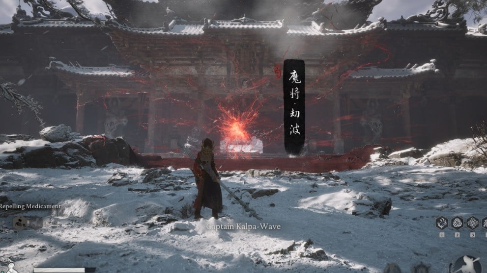 The final captain is not too far off as you make your way forward towards the New Thunderclap Temple. It acts as the guardian of the gate and wards off any intruders. You’ll run into it naturally as it’s just ahead to the right of the third captain and part of the main story. At this point, Captain Kelpa Lotus should not pose too much of a threat to you as it’s not a particularly challenging boss fight.