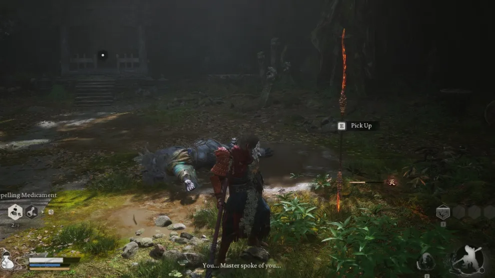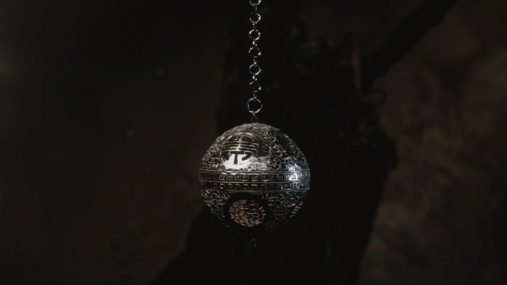 Once you ring all three bells, you will be teleported to a secret location where you must defeat the hidden Yaoguai King, Elder Jinichi. Defeating him will cause you to exit the secret world, and you can now interact with the body hanging near the bell. Interact with it to receive the first Vessel, the Fireproof Mantle.