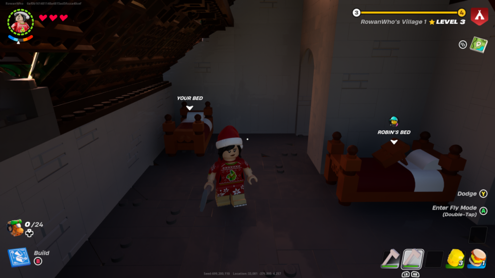 When you start a new world and start to build a village in LEGO Fortnite you will need to build a bed for every person you want to stay. A new villager can only live in your village if they have a bed to sleep in! You can also build yourself a bed so your character can rest too. Resting in a bed in LEGO Fortnite heals and rejuvenates your character so they feel fresh and healthy and ready for another adventure.