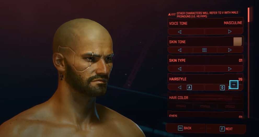 Once you’ve found the one you’re happy with, leave the slider and continue fine-tuning the rest of V’s appearance. You can change V’s hair color with the slider below, too.