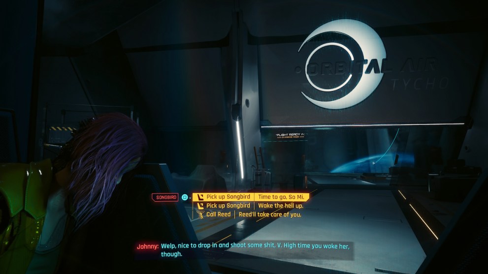 One of Reed’s main reasons for meeting V is to gain insight as to why Songbird seemed to trust V instead of him. No matter what you say to Reed, he’ll confirm the surgery is about to be underway any day and to wait for the call.