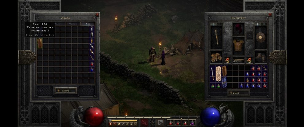Your journey will begin in the Rogue Encampment, and you can speak with the various NPCs to trade with them and buy some useful equipment. If you speak with Akara, you’ll see that she sells the Tome of Identify and the Tome of Town Portal for a few hundred gold each. If you haven’t already guessed from the names, yes they do work similarly to the Scrolls of Identify and Town Portal, but with one key difference.