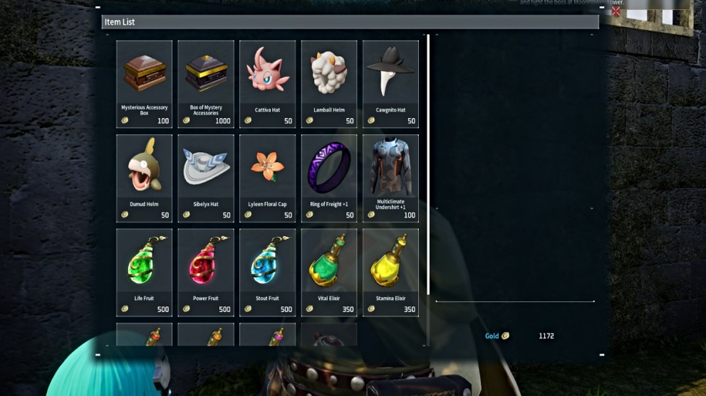 The items in question range from accessory space boosts to adorably goofy Pal-shaped hats for your character, to some very practical Elixirs and Fruits. Some of them are pricey, so make sure to spend your coins wisely and prioritize what’s most practical for you.