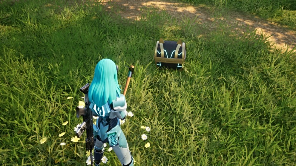 The other confirmed method to obtain Dog Coins is by finding and defeating Mimog Pals, which resemble treasure chests. However, you can tell them apart by their bright green decor and a similar dog ear feature on top of the “chest”.