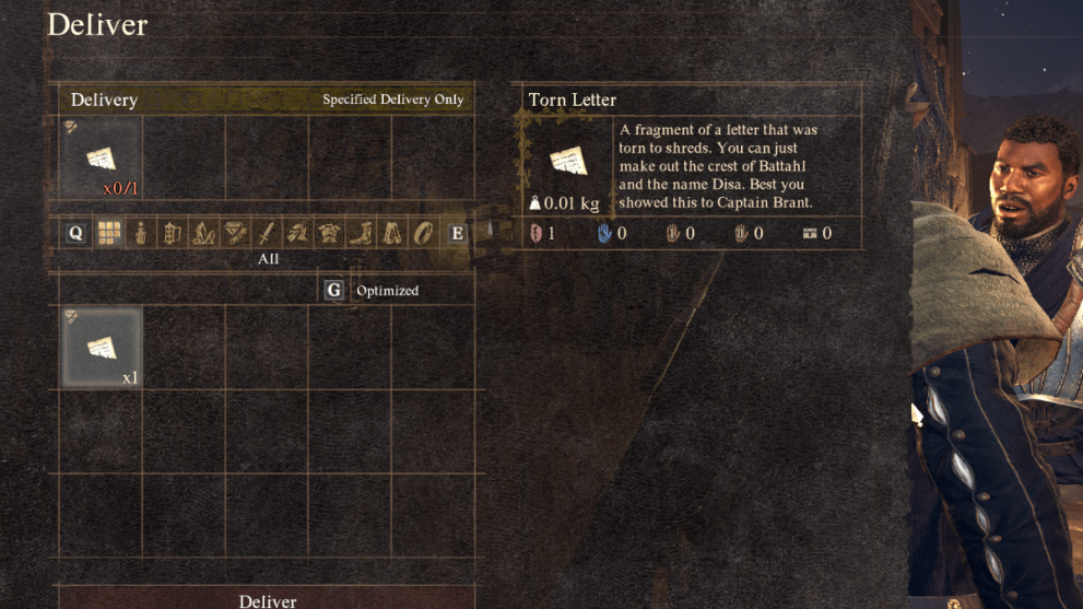 Head inside the Queen’s Quarters and pick up the Torn Letter on the table. At this point, you’ll be interrupted by the Prince, who will help you escape.