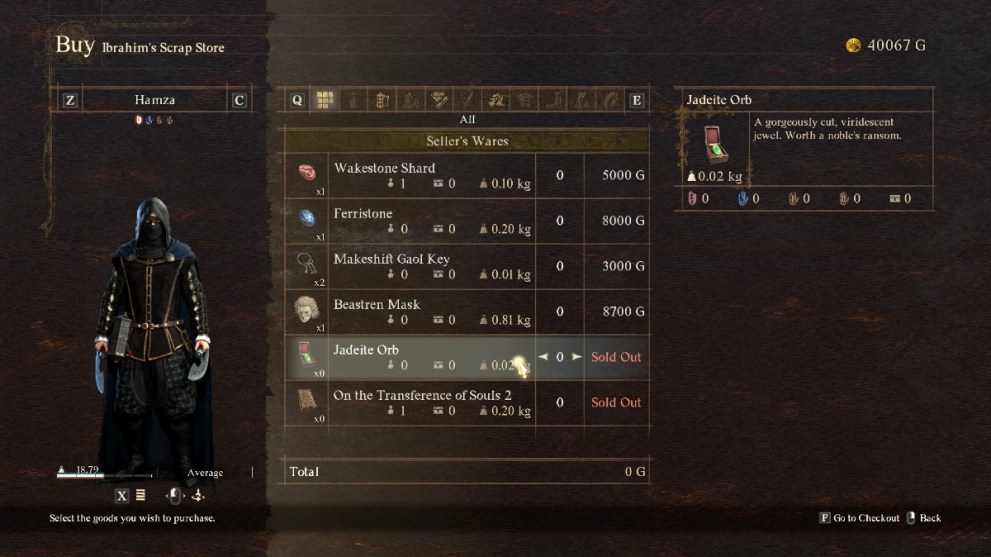 To actually get a hold of the orb, head to Ibrahim’s Scrap Store. The slave misplaced the orb and it ended up with this vendor. Ibrahim sells the Jadeite Orb for 7,500 Gold. Once you have it, you can decide whether to give it to the slave or the master vendor.