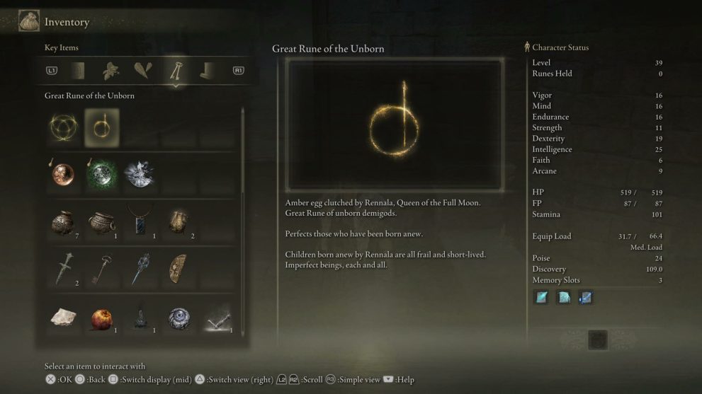 All of the major story bosses in Elden Ring will drop a Great Rune, most of which need to be activated at the Divine Tower in their respective regions. Upon defeating Rennala, you’ll get the Great Rune of the Unborn. However, unlike Godrick’s Rune, this one works a bit differently.