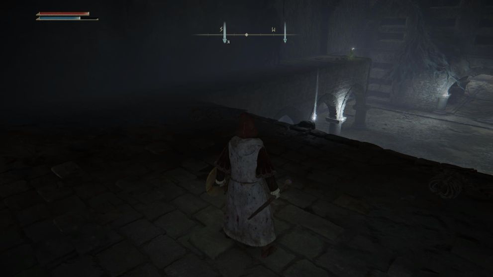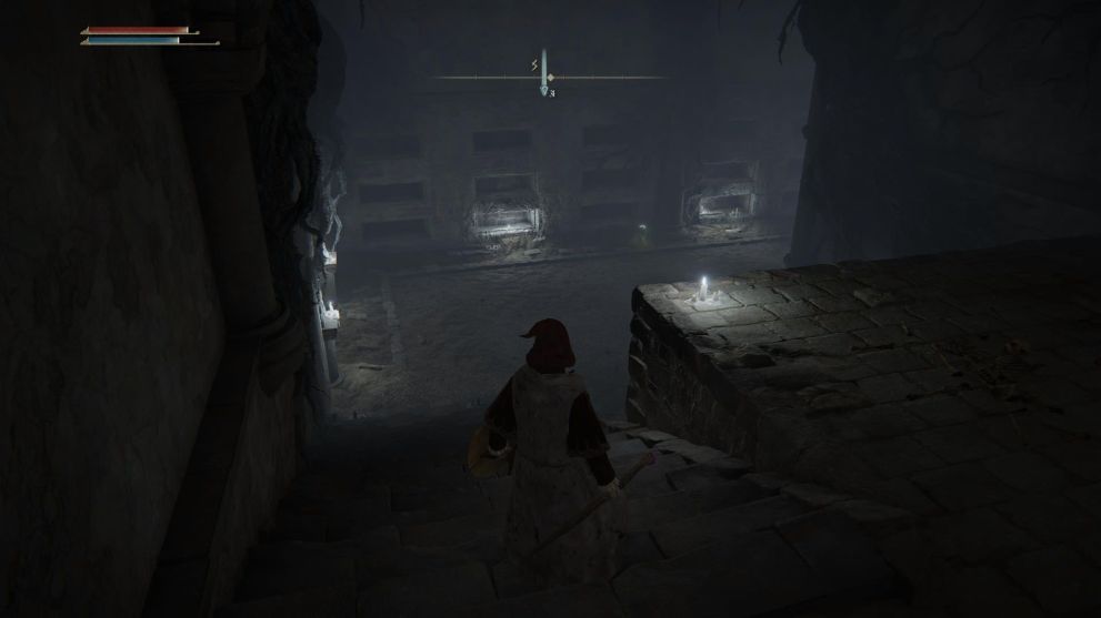 Instead, simply walk down the stairs from the entrance of the dungeon and continue forward and then down another flight of stairs (pictured above) before hanging a hard right and through a small door on the left.