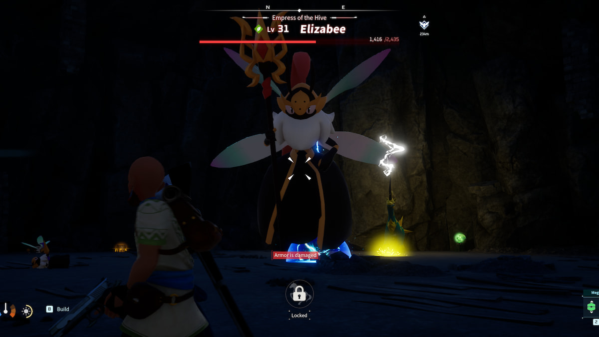 Once you enter the shaft, keep going through the cavern system until you reach a very dark area. That’s where Elizabee’s nest is and where the boss fight takes place. If you are not level 35+, I recommend you take the best gear and pals you have to the Elizabee fight, as it’s one of the toughest bosses you’ll challenge at this point in Palworld.