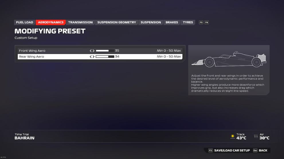 That also means that you’ll be breaking later and hitting the apex earlier, so be ready to adjust your driving and breaking points slightly when using this setup. Anyway, here is the best setup for Bahrain in F1 24: