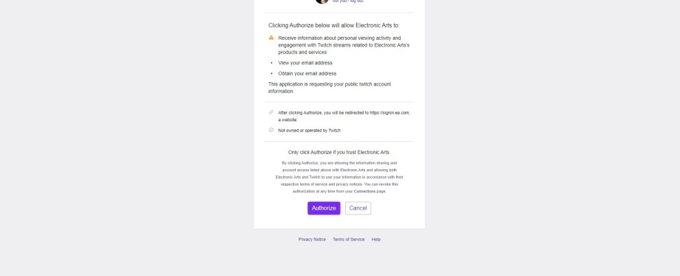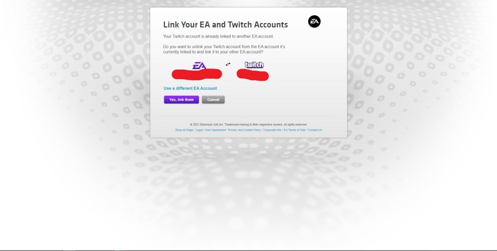 - Finally, confirm you want to link your EA and Twitch accounts by clicking ‘Yes, Link Them’