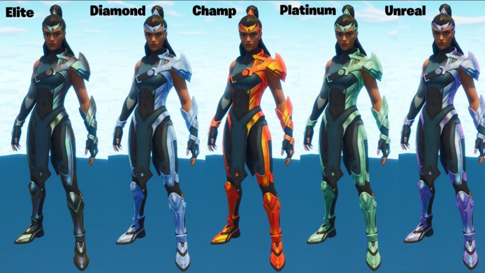 Odyssey will be one of the Chapter 5 Season 2 battle pass skins with multiple variants. The latest leaks according to ShiinaBR on X show what we can expect from the Odyssey skin. She will have six variants: Gold, Elite, Diamond, Champ, Platinum, and Unreal.
